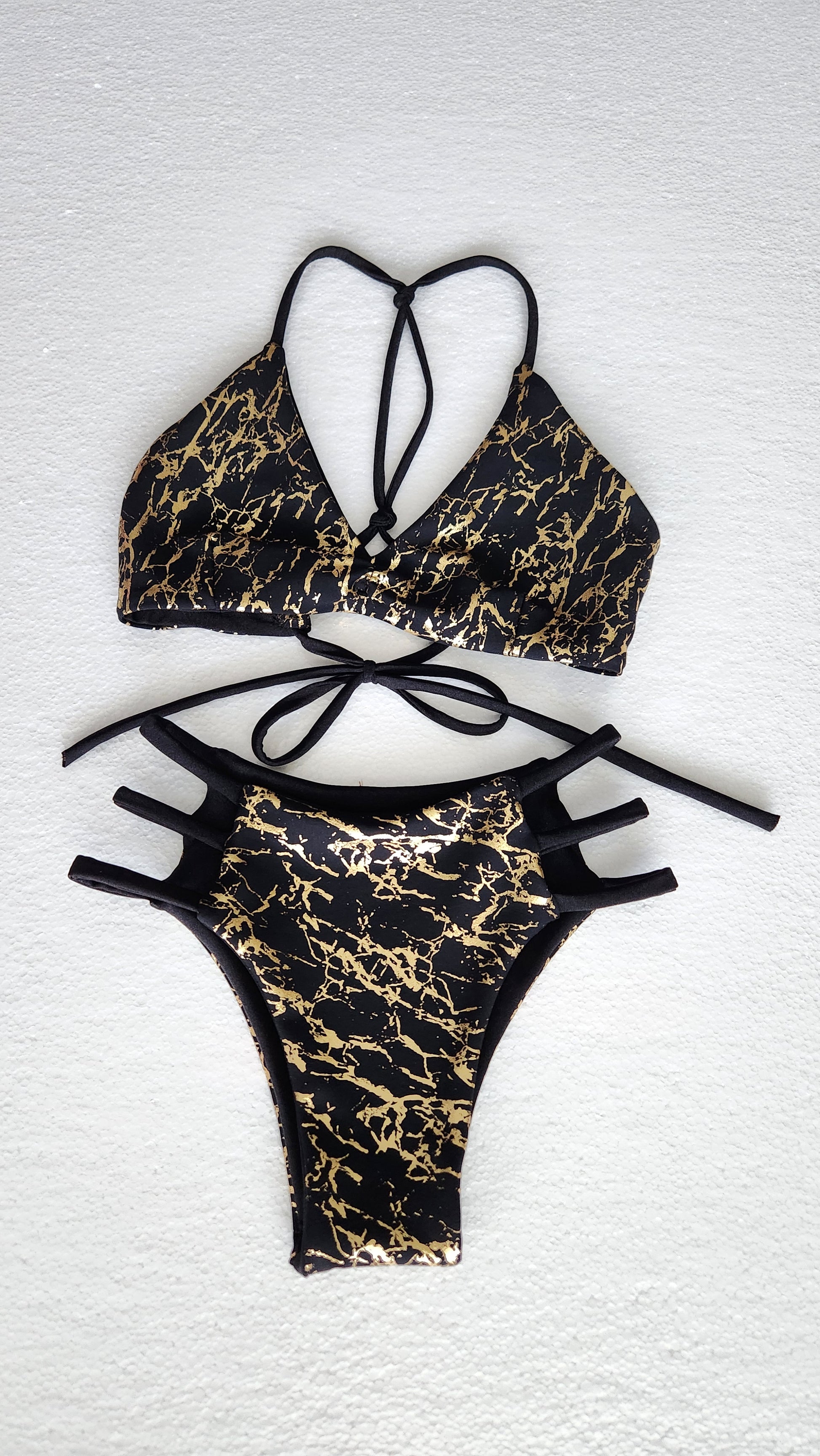 Black and Gold Foil Elise Bikini Top & Key West Reversible Cheeky Bikini Bottoms