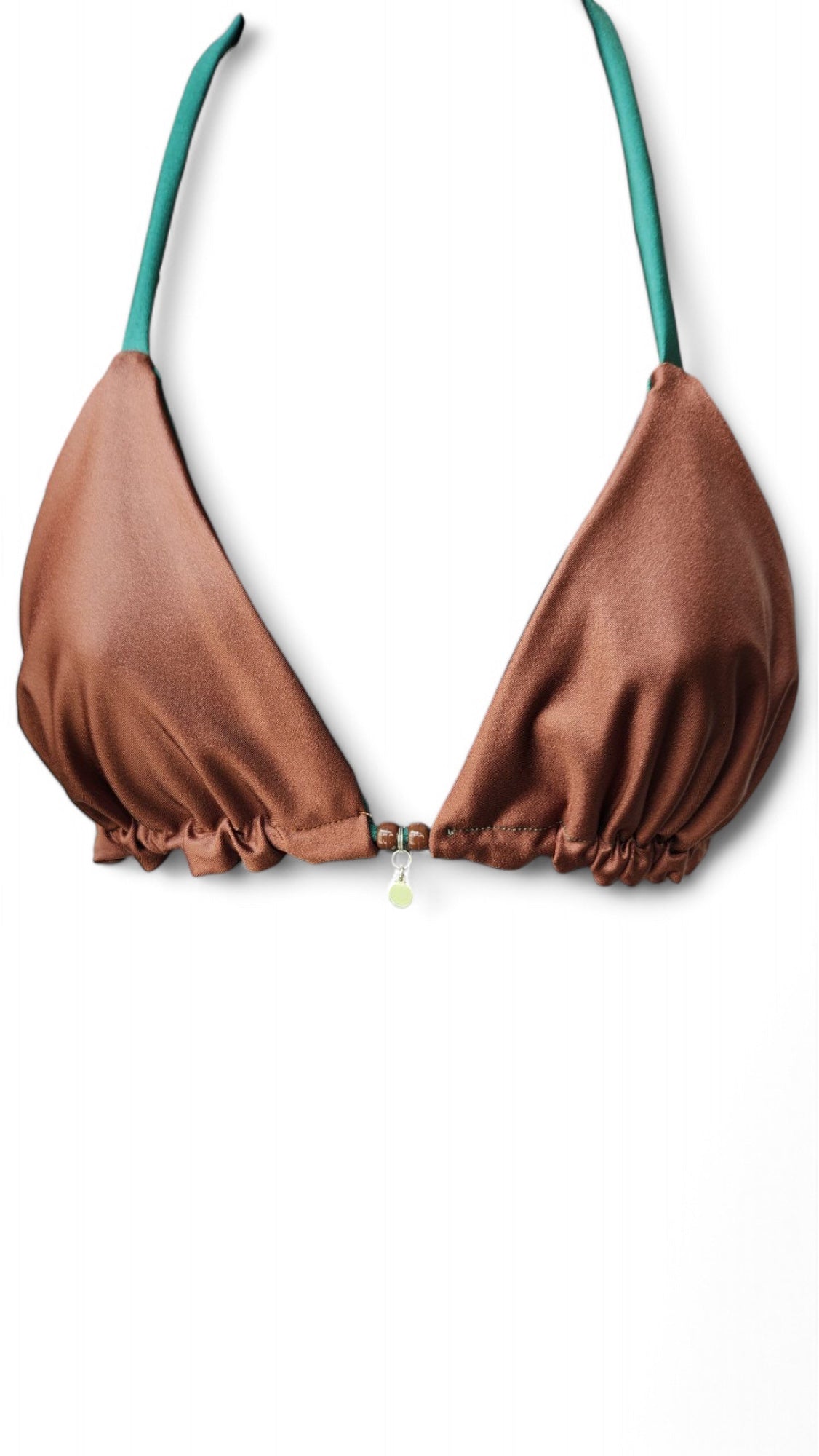 Indulge in the ultimate guilt-free treat with our mouthwatering Mint Chocolate Reversible Bikini Triangle Top! You won't be able to resist its deliciousness and versatility!