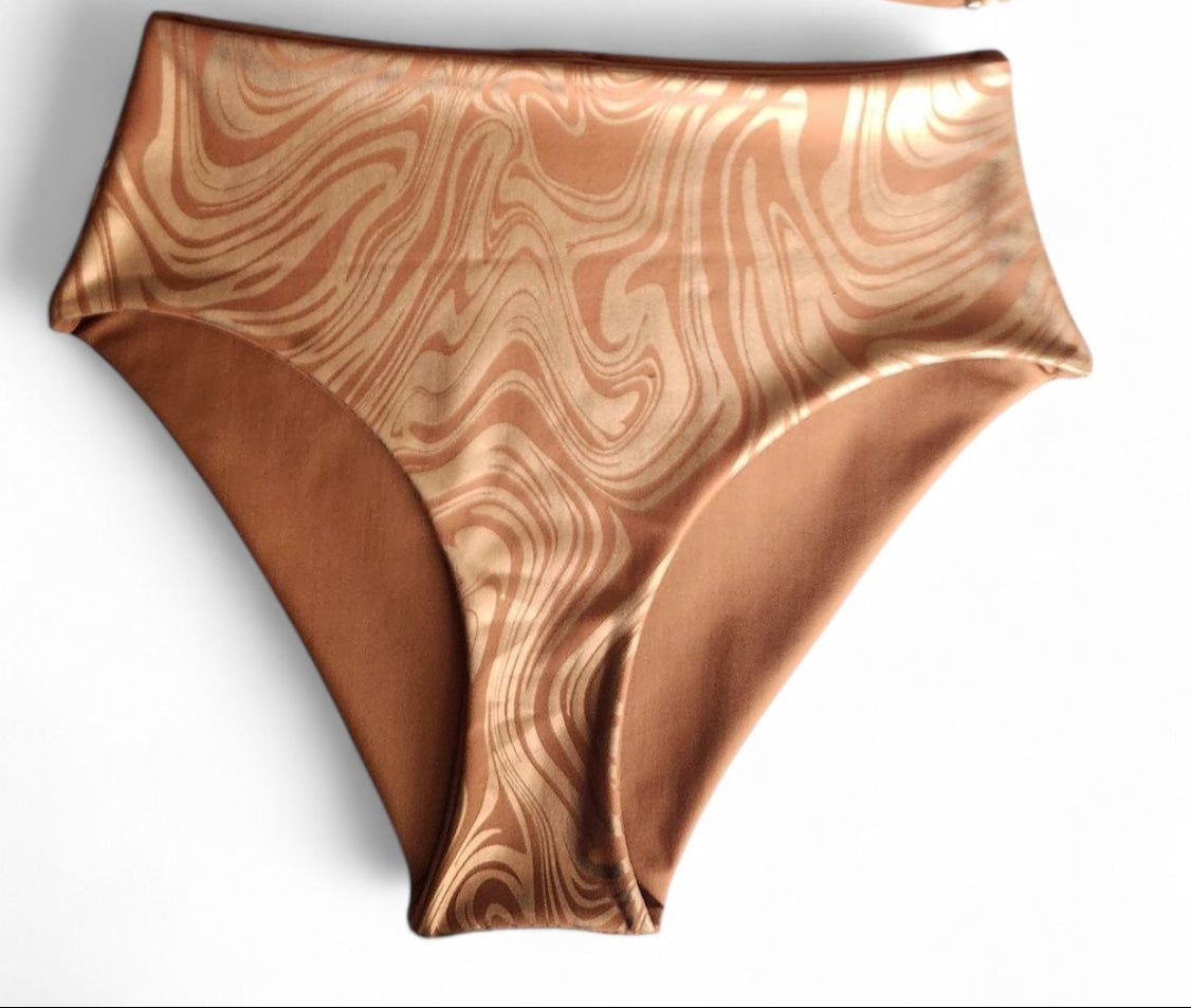 Who said you can't have it all? With our Mocha Mousse Swirl Reversible High-Waist Full Coverage Bikini Bottoms, you'll have double the style and comfort. (And we won't tell anyone you're wearing the same bottoms twice in one vacation.)